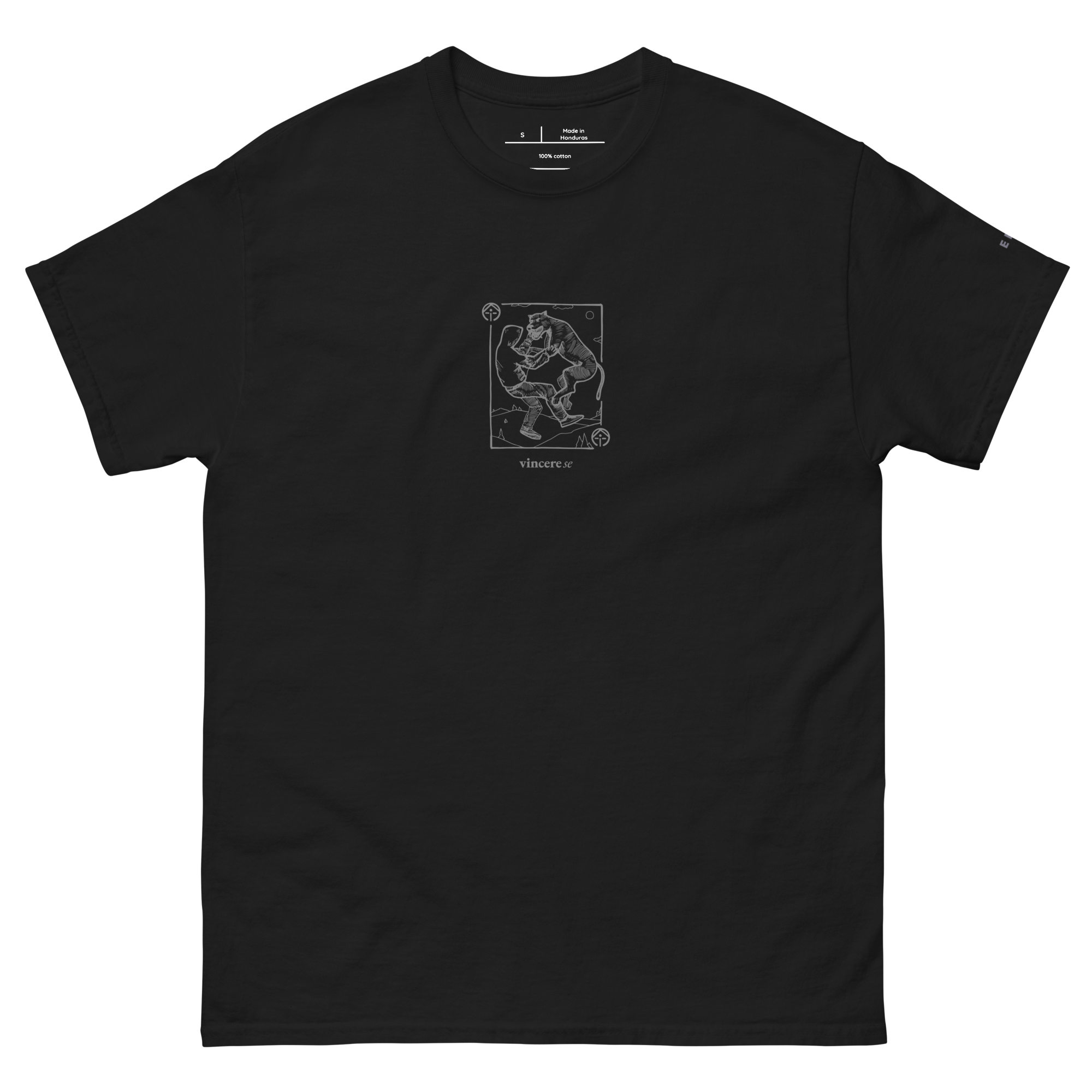 The 100% cotton men’s classic tee will help you land a more structured look. It sits nicely, maintains sharp lines around the edges, and goes perfectly with layered streetwear outfits.
